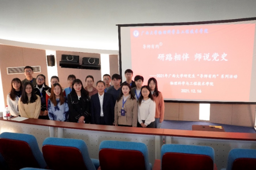 第一期主题为“研路相伴,师说党史”,由袁涛书记作为主讲人,袁涛书记围绕“学史明何理”、“学史增何信”、“学史崇何德”、“学史力何行”四个方面为同学讲解了党史学习的重要性。书记强调要从党的光辉历史中汲取成功的经验,将个人与民族和国家结合,在党的领导下,努力实现中华民族伟大复兴的中国梦。