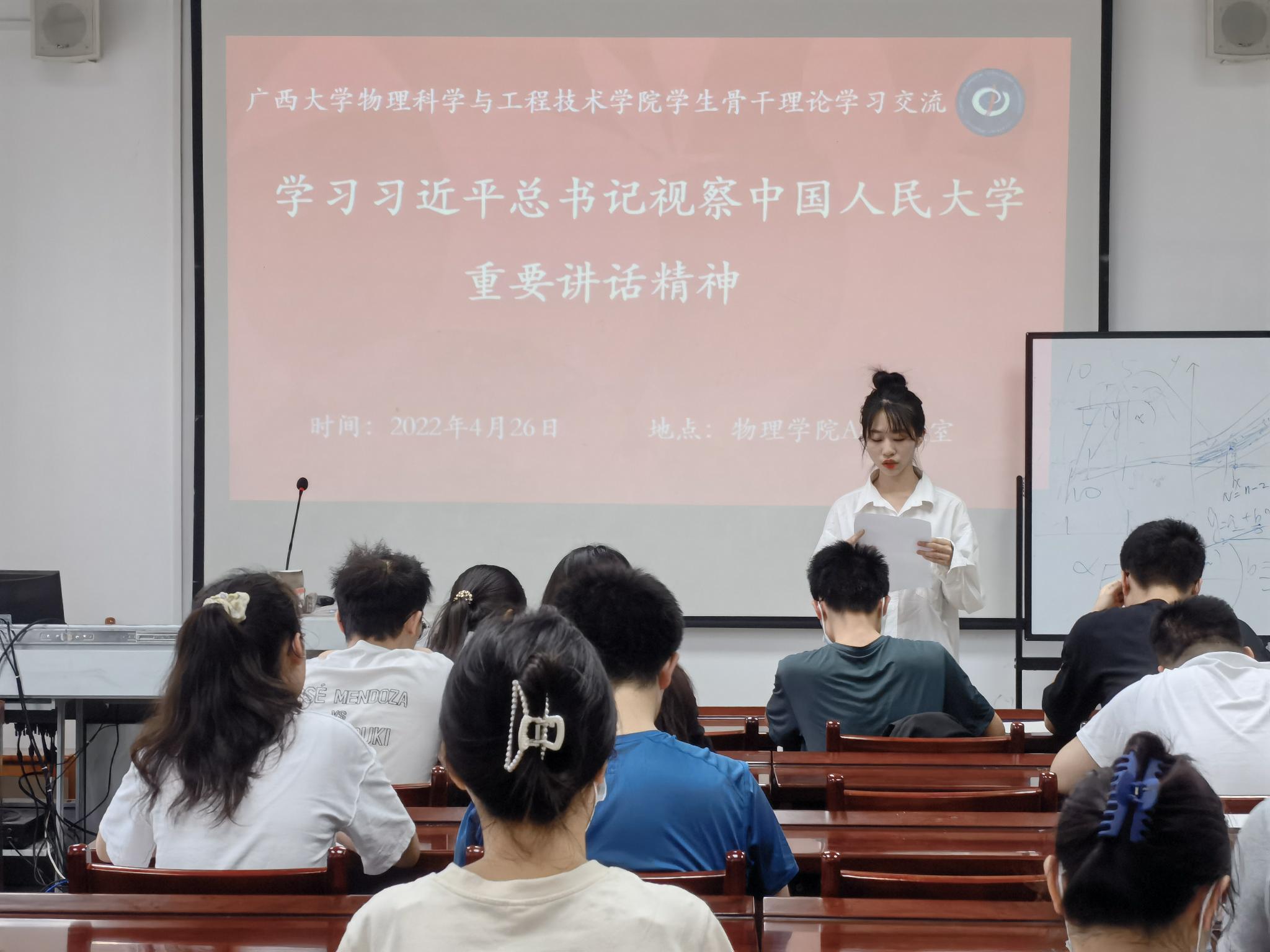 党委书记袁涛在总结发言中指出,全院师生要以各种形式学习习近平总书记的重要讲话精神,并将其精神内涵结合“创新创造、奋勇争先、全面一流”的广西大学“双一流”精神,踔厉奋发、笃行不怠、争创佳绩。