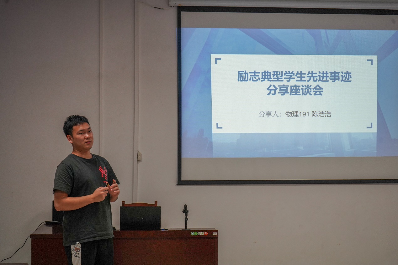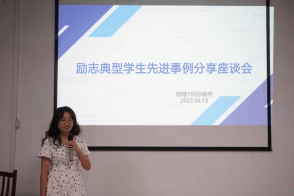 座谈会中,物理192班孙晓冉同学和电科193班刘冬梅同学分别从专业学习、保研、学科竞赛以及学生干部经历等多个方面进行了经验分享,物理191班陈浩浩同学和电科193班陆金旺同学分别从志愿服务、备战考研、科研实训、入伍经历以及求职面试等多个方面进行了经验分享,建议同学们要始终将学习放在第一位,合理规划时间,高效率地学习和工作,不断充实自己、积蓄能量,以奋斗姿态激扬青春,不负时代,不负华年。