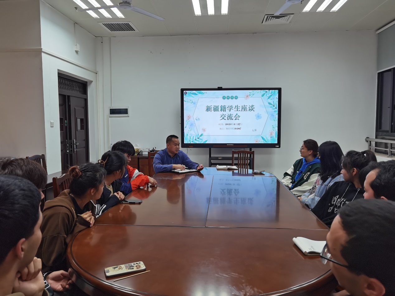 组织召开全体新疆籍学生座谈会,各年级来自新疆内高班的同学和辅导员参加本次座谈。座谈会由院党委副书记蒋津辉主持。
