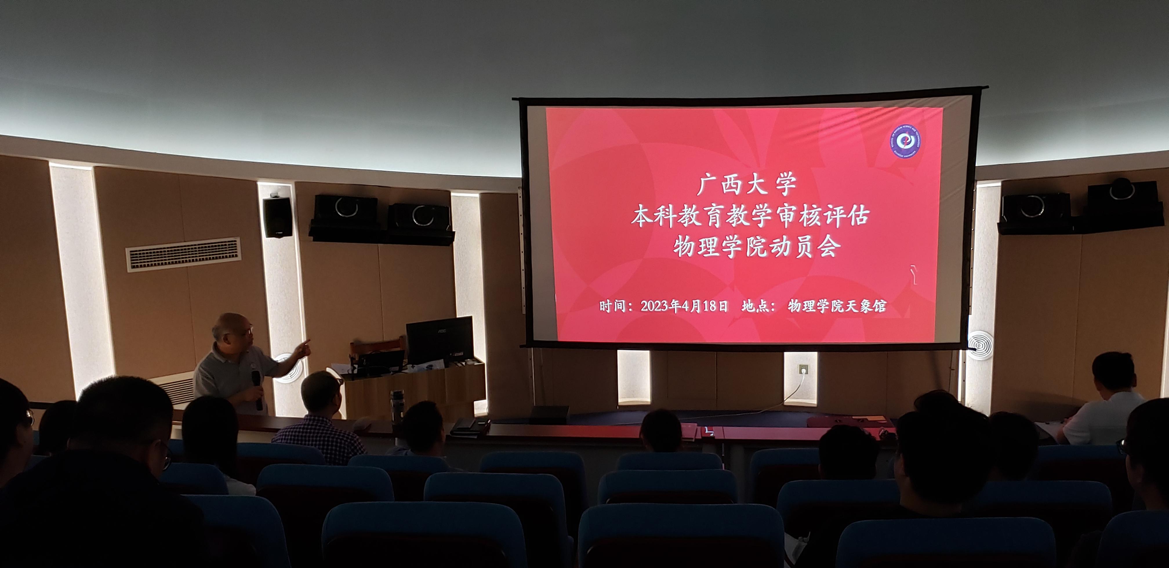 天象馆召开本科教育教学审核评估动员大会,院长梁恩维主持会议,全体教职工参加会议。