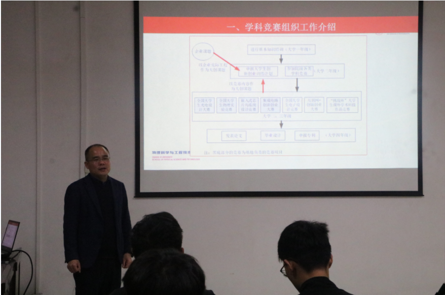 于3月15日在物理楼A506会议室举行了学科竞赛(电子类)动员会,电子科学与技术、集成电路系统与集成、物理电子创培班等专业的学生参加,副院长、物理实验中心主任陆翔出席会议。