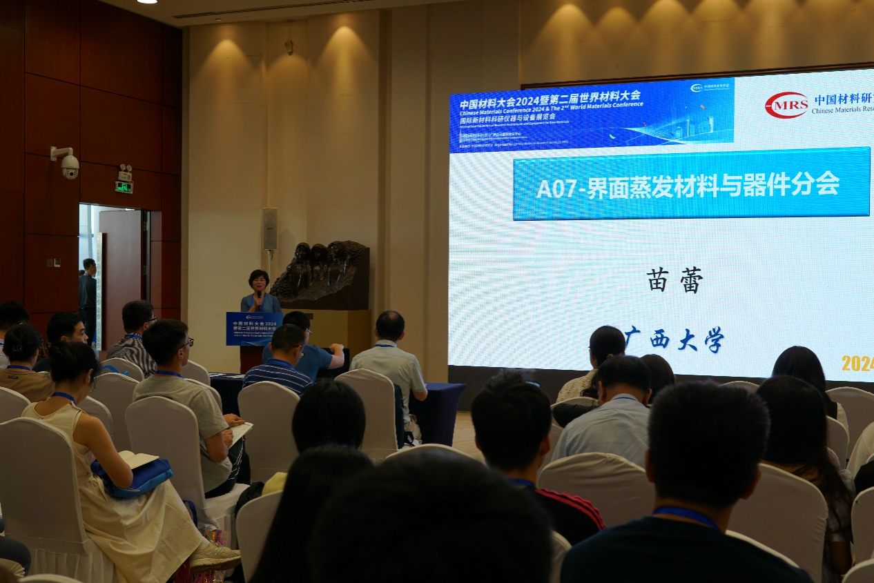 2024年7月8日至11日,中国材料大会2024暨第二届世界材料大会在广州成功举办。“中国材料大会”作为中国材料研究学会的年度盛会,是中国新材料领域的顶级学术盛事,以其广泛的学科覆盖面和最新的前沿动态吸引了超过万名专家学者的参与。此次大会A07-界面蒸发材料与器件分会,由中国材料研究学会主办,广西大学、东北大学、南京大学、海南大学及桂林电子科技大学协办,聚焦前沿技术与国家重大需求,致力于推动新材料领域的创新与发展。