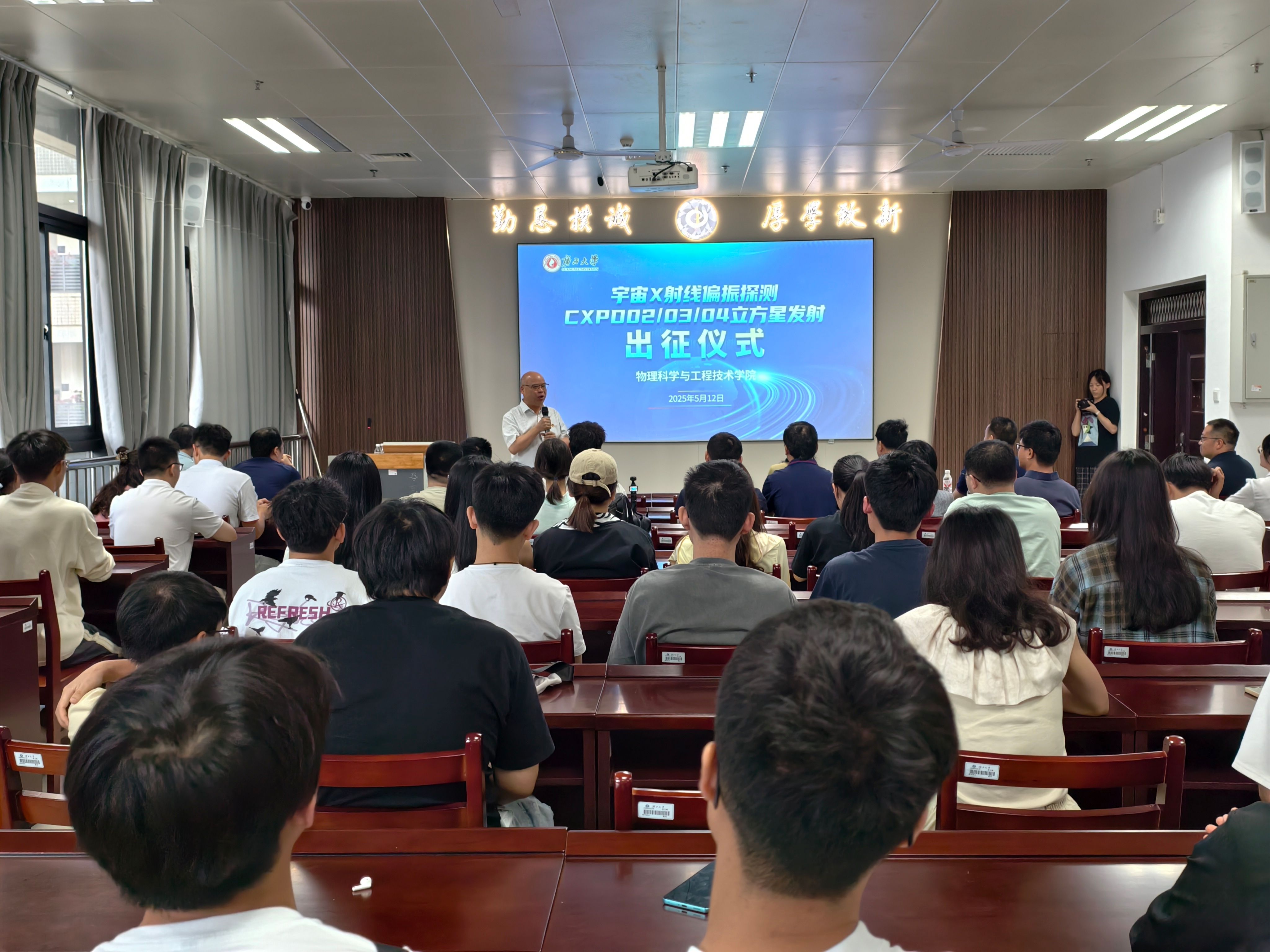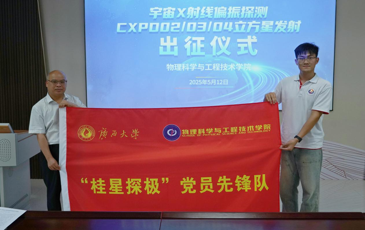 举行宇宙X射线偏振探测(CXPD)系列立方星发射出征仪式,为即将奔赴酒泉卫星发射中心见证发射任务的团队壮行。校党委常委、副校长梁恩维为出征团队授旗并讲话,圣淘沙赌场官网
