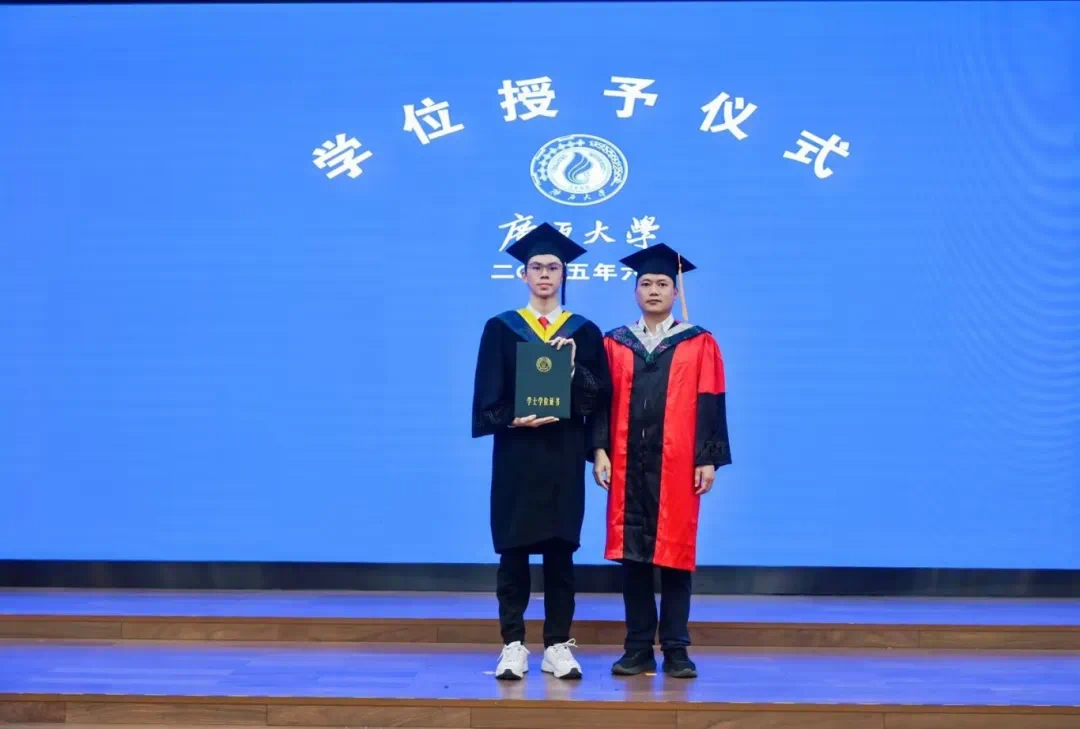 在备受瞩目的学位授予环节,刘宏邦亲自为毕业生逐一拨穗正冠。当学位帽的流苏从右侧轻拨至左方,这一简单却饱含深意的动作,不仅标志着毕业生圆满完成学业,更象征着2025届学子即将告别校园,踏上人生新征程,以更加成熟自信的姿态迎接未来的机遇与挑战。