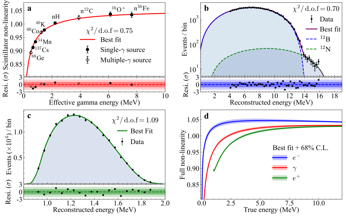 (能量响应非线性精确刻度分析结果图表,该成果已纳入JUNO实验首个物理成果文章)