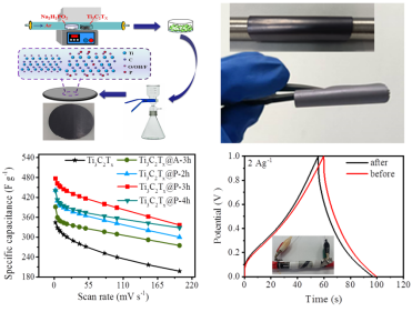 该工作提出一种低温快速原位磷掺杂策略功能化Ti3C2Tx-MXene,揭示了P原子掺杂在改善Ti3C2Tx-MXene的结构、组成和电化学性能方面的作用,演示了在准固态柔性超级电容器中的应用,为MXene材料的表面改性和功能化提供一种有意义的参考策略。