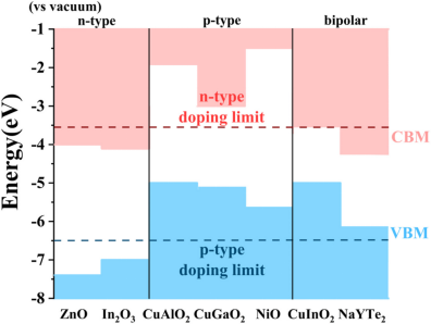 图2:NaYTe2与不同n型和p型透明导电材料的带边位置对比。