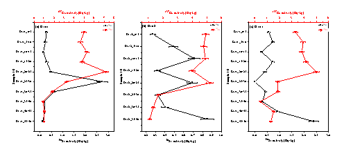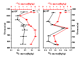 图2:90Sr和137Cs活度在三根土壤剖面样品中的分布趋势