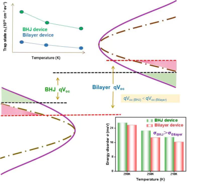 相比于太阳光谱,室内光谱的吸收范围在400nm-780nm之间,因此相比于电流,电压与填充对OSCs 的效率起着更重要的作用,而其又与缺陷态、能级紊乱密切相关。基于此,圣淘沙赌场官网