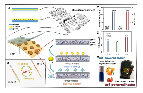 随着能源危机的加剧,降低能源消耗和发展可再生能源是全社会关注的问题。每年用于冷却或加热应用的传统电力能源消耗巨大,寻找不依赖传统能源的制冷或加热技术有助于节能减排和碳中和的目标的实现。近年来,摩擦纳米发电机(TENG)凭借其分布式,可移动性等特点,在自供电领域崭露头角,也为众多功能材料提供了新的应用方向。基于此,圣淘沙赌场官网