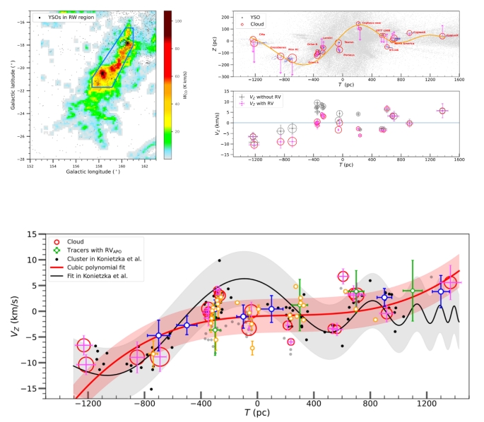 等地合作者开展大尺度分子云结构的运动学性质的相关研究,成果以 “Updated Kinematics of the Radcliffe Wave: Nonsynchronous, Dipole-like Vertical Oscillations” 为题被《天体物理学杂志》(The Astrophysical Journal) 期刊接受发表。