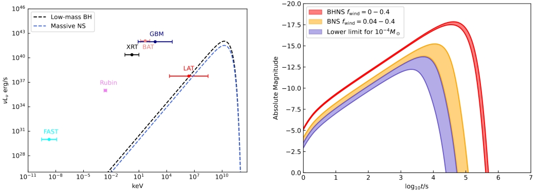 在一些致密天体并合产生引力波事件中,比如GW190814,GW230529等事件,发现存在一些致密天体的质量处于(2.2−3)太阳质量之间(以下简称MCO),超过中子星TOV质量上限,使得我们很难从质量角度辨认这些致密天体的身份,因此,文中提出了一种基于与该类引力波事件成协的电磁辐射信号来区分这些致密天体的方法。文中发现,当MCO与一个中子星合并时,其作为低质量黑洞或者大质量中子星参与合并而产生的千新星、前兆辐射和FRB均有区别,可以通过对这种电磁辐射观测来辨认MCO的身份。当MCO与黑洞合并的时候,只要能产生电磁辐射,则MCO必为大质量中子星,但是其产生电磁信号的条件更苛刻,其前兆辐射也更弱。