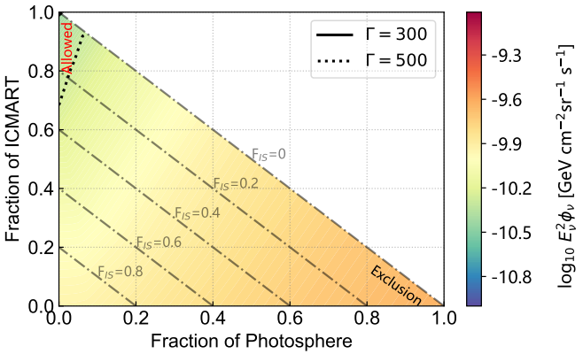 研究结果表明,两种独立的方法都指出在基准参数下,绝大多数伽马暴的瞬时辐射起源于ICMART模型,其中使用真实样本的方法得出耗散光球模型的占比上限为0.5%,内激波模型的占比上限为1.1%,ICMART模型的占比下限为98.9%。对于使用对光度函数进行积分的方法而言,耗散光球模型的占比上限为6.1%,内激波模型的占比上限为8.2%,ICMART模型的占比下限为91.8%